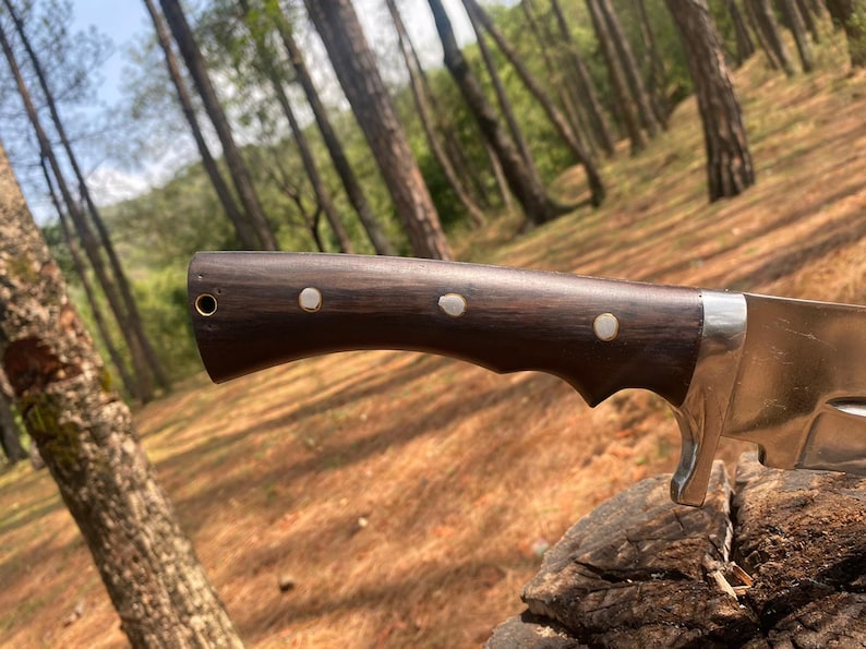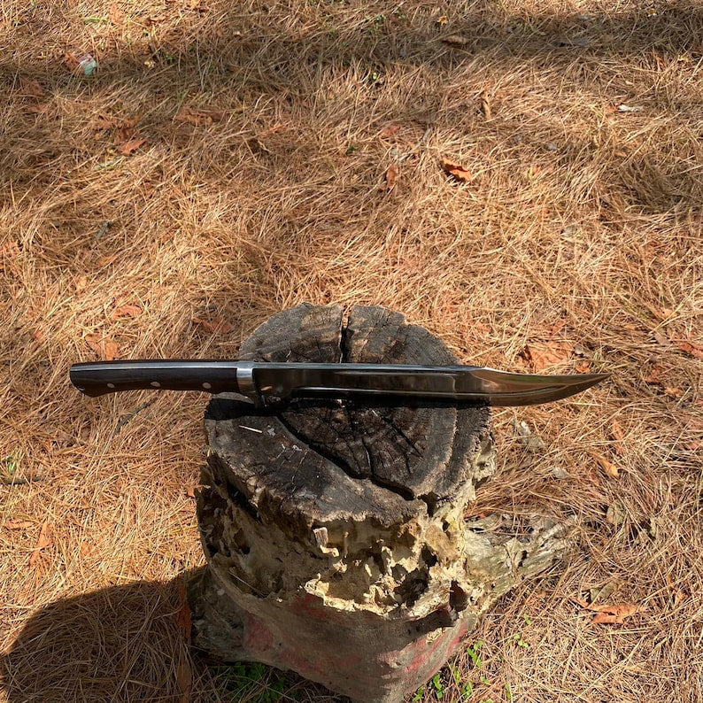 This 12-inch handmade Seax knife is a versatile and durable tool designed for daily use and bushcraft. Forged from highly graded carbon steel (5160 truck/car/jeep leaf spring), the blade is strong, sharp, and built to last.