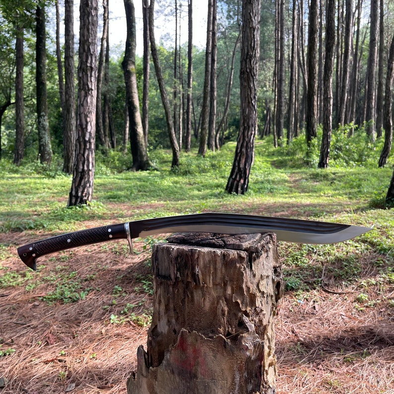 This 18-inch handmade Gurkha kukri is specially crafted for daily use, inspired by the traditional farmer’s khukuri of Nepal. Forged from 5160 high-carbon steel (recycled truck leaf spring), the blade is water-tempered for durability, balance, and strength.