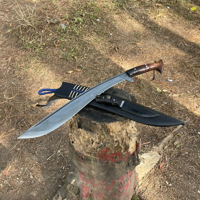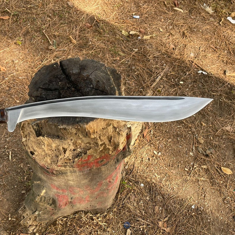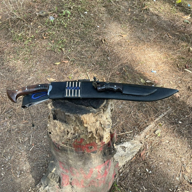 This 20-inch hand-forged Kukri is a powerful, traditional blade crafted with precision and care. Forged from highly graded carbon steel (5160 car spring), this kukri is water-tempered to deliver exceptional hardness, edge retention, and chopping power.