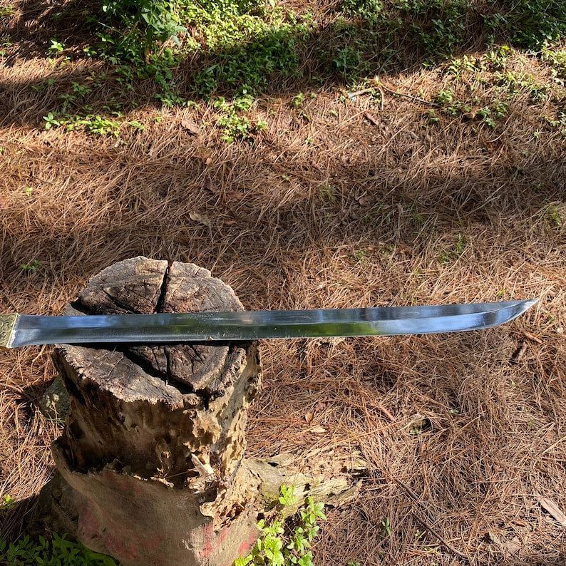 This 29 inch handmade Viking Saiba Sword is a traditional and tactical blade forged by skilled artisans in Nepal. Crafted from highly graded carbon steel (5160 truck leaf spring), the blade is razor sharp and made using a balanced water-tempered process for strength, edge retention, and durability.
